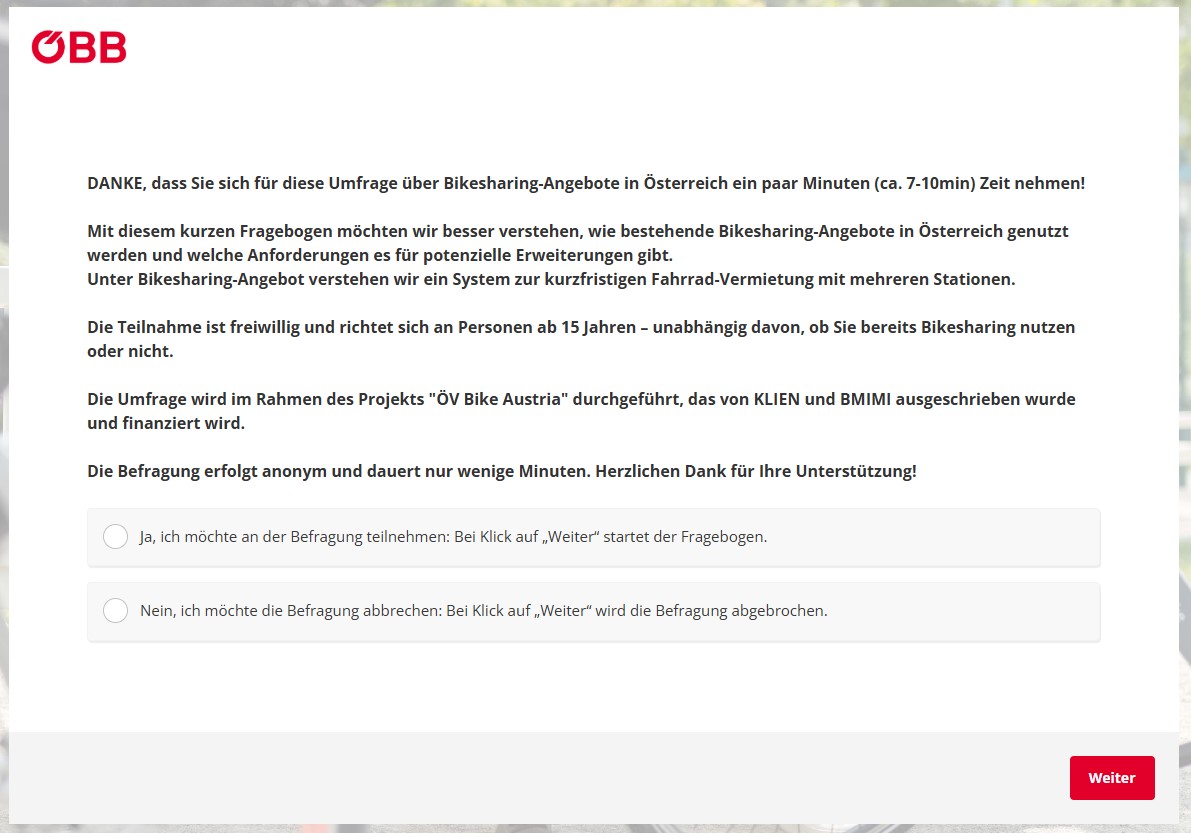 Das Mobilitätsministerium und die ÖBB erheben, wie und ob Bike-Sharing genutzt wird. Eine Teilnahme an der kurzen ÖBB-Umfrage kann helfen, den Grundstein für ein österreichweites Bike Sharing System zu legen.
